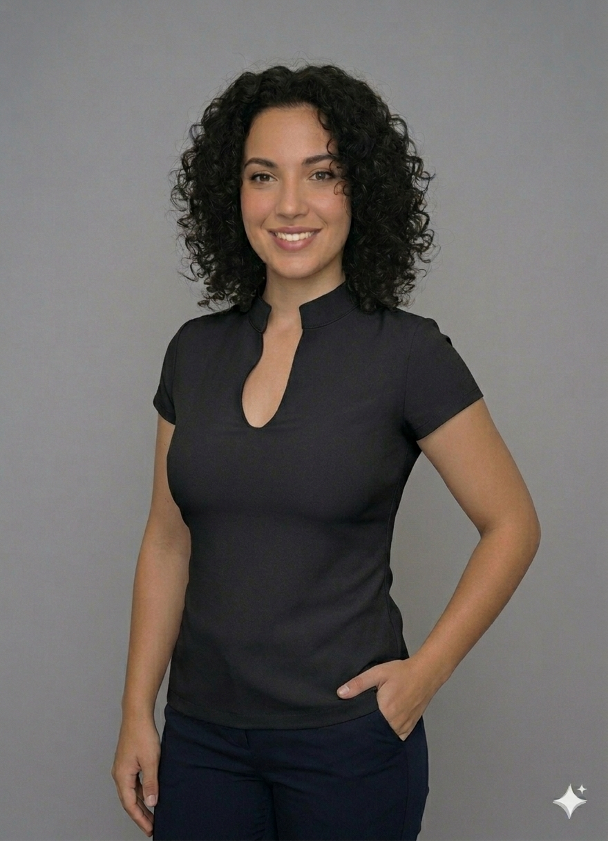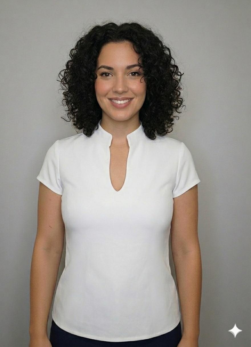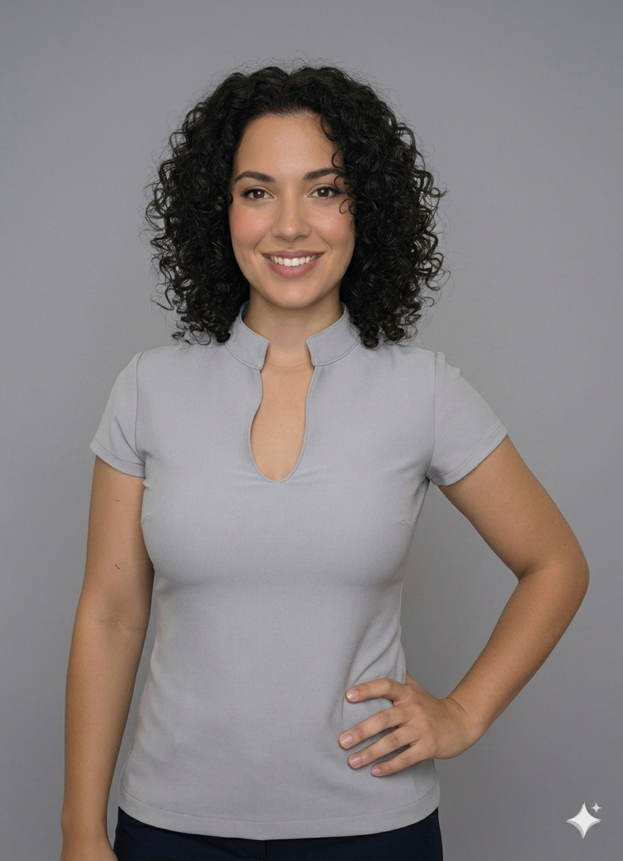 The perfect V Neck Mandarin Collar Top.